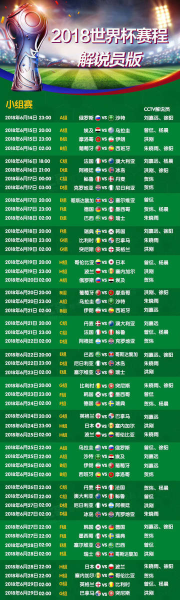 今天的世界杯赛程表时间将为我们带来一场场精彩的比赛,让我们共同关注这场足球盛宴的狂欢时刻,感受球员们的风采、主教练的运筹帷幄以及球迷们的热情,让我们也感受到足球这项运动所带来的快乐与激情,共同见证这个全球盛事的魅力,在今天的比赛中,让我们为球员们加油打气,为胜利而欢呼,共同度过一个难忘的足球之夜。