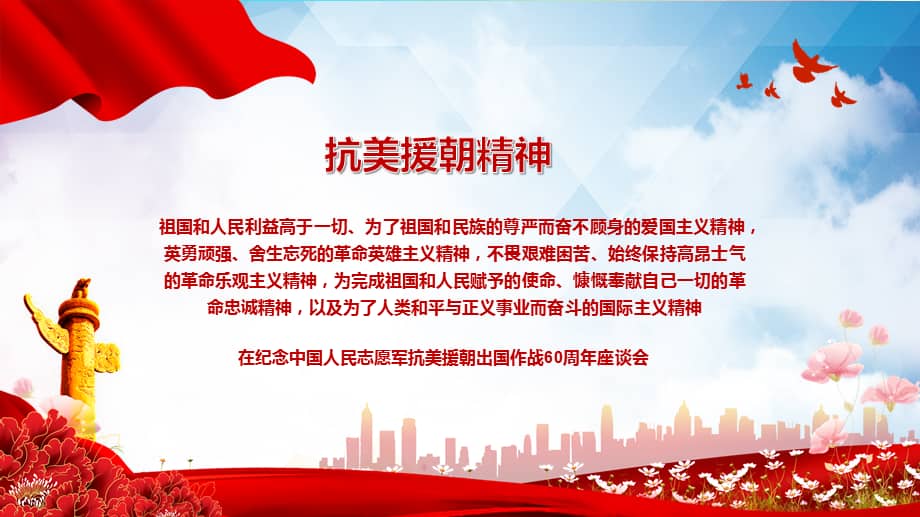 让我们共同纪念抗美援朝胜利七十周年,铭记历史,珍惜和平,为实现中华民族伟大复兴而努力奋斗!