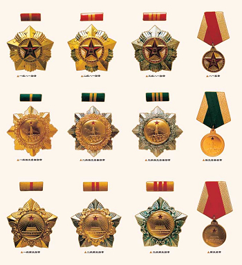 3、八一勋章:为纪念南昌起义而设立,用于表彰在军事斗争和国防建设中作出突出贡献的个人和集体,八一勋章体现了人民军队的光荣传统和英雄气概。